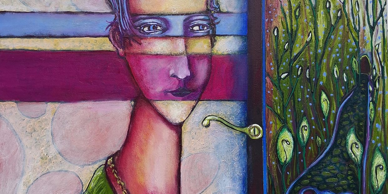A Strange Gift is a surreal, symbolic portrait that merges whimsy with psychological depth. Rod Acosta’s layered color fields and elongated figure create a dreamlike tension, while the mysterious frog-like figure holding a radiant emblem introduces an otherworldly narrative. Rich textures, bold hues, and unexpected contrasts i